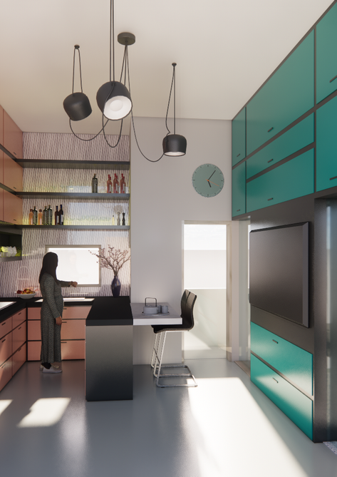 המרחב שאנחנו תופסים מושפע מהאור שהעין שלנו תופסת. ככל שהעין תופסת יותר אור כך מרגיש לנו שהחלל יותר רחב ופתוח. בעצם מה שהכלל הזה אומר הוא שעל הצבעים בחדר להחזיר כמה שיותר אור לעין. המטרה היא לתת מרחב כמה שיותר פתוח שנותן לנו לתפוס כמה שיותר מהמרחב במבט אחד. כך החלל מורגש יותר וניתנת לנו תחושת קלילות ואווריריות במרחב.את זה אני רוצה לייצר בעזרת צבע, מחיצות דקות, קווים ישרים במרחב וכאן נכנסת התקשורת החזותית שעוסקת בדרכי ההתבוננות והראייה של העולם והמרחב שלנו. שילוב זה מאפשר לעצב חוויות עשירות, מקוריות וחדשניות, לבטא רעיונות ומסרים דרך עיצוב של מרחבים רב-תחומיים.העיצוב בעזרת תקשורת חזותית עוזר לנו משום שהיא מבליטה את המטאפורות והדימויים להבניית המציאות.באופן הזה אפשר לעשות את ההפרדה בין האזורים בעזרת צבע, ככל שהמרחב פתוח יותר ומאפשר לעין לשוטט, כך תחושת הקלילות והאוויריות תורגש במרחב.
